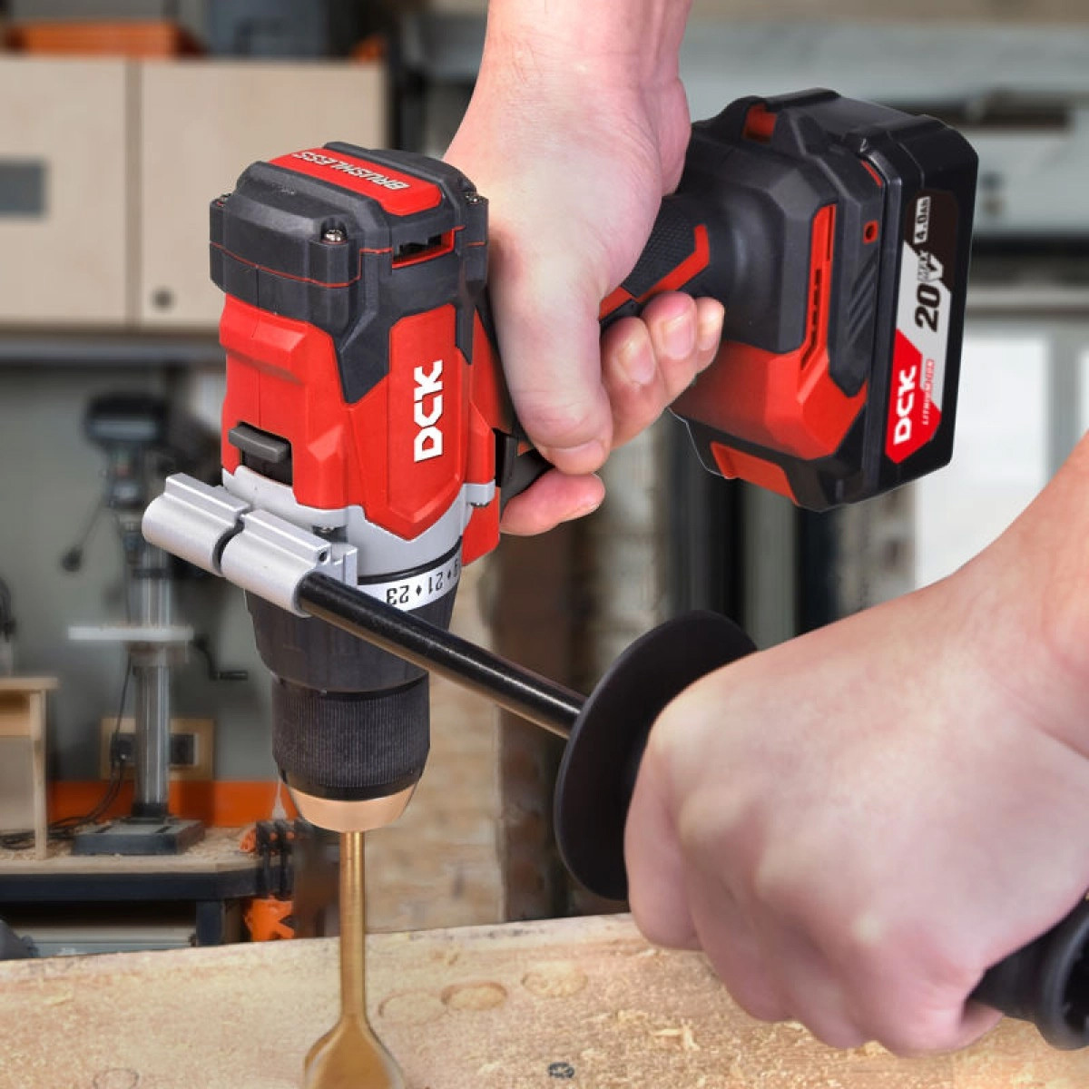 DCK Дрель-шуруповерт аккум бесщеточная KDJZ06-13 18в, 2*4А/ч, 120нм, кейс