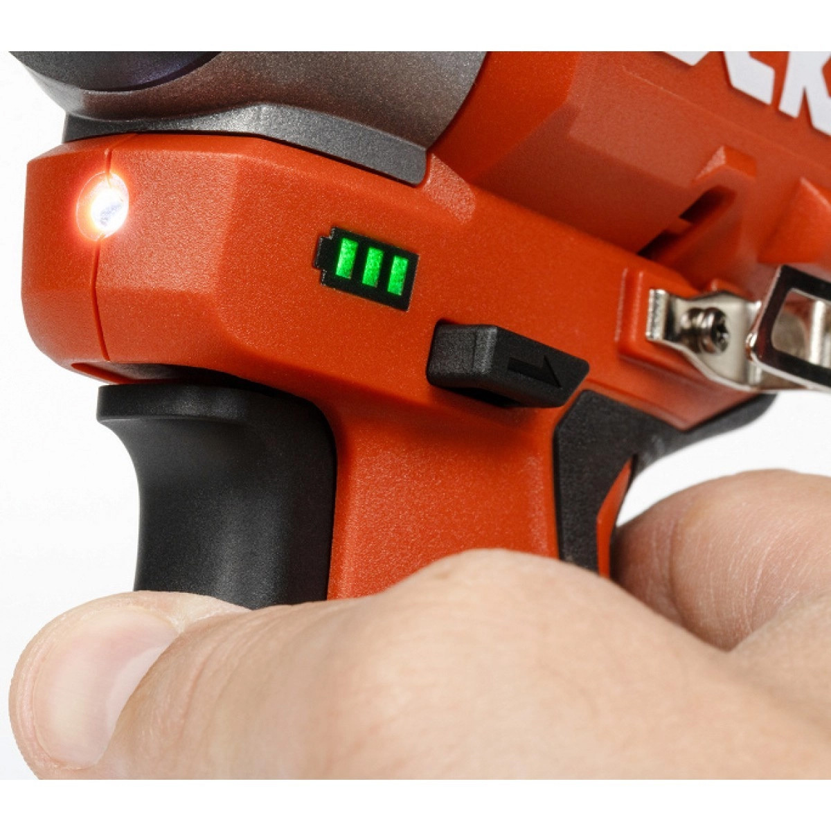- Красный индикатор: высокая скорость вращения (до 3300 об/мин), макс. число ударов — 4000 в минуту. Подходит для операций, где требуются высокие усилия и скорость.