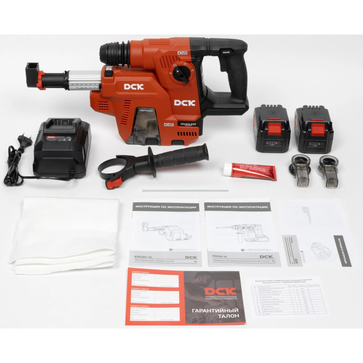 DCK KRH20V-26 - идеальный выбор для профессионалов! Два аккумулятора емкостью 6 А/ч обеспечат продолжительную работу, а встроенный пылесос поддержит чистоту на рабочем месте. Удобный дизайн и компактность делают его незаменимым помощником в ограниченных пространствах. Надежность, мощность и инновационные решения сделают ваш труд более комфортным!